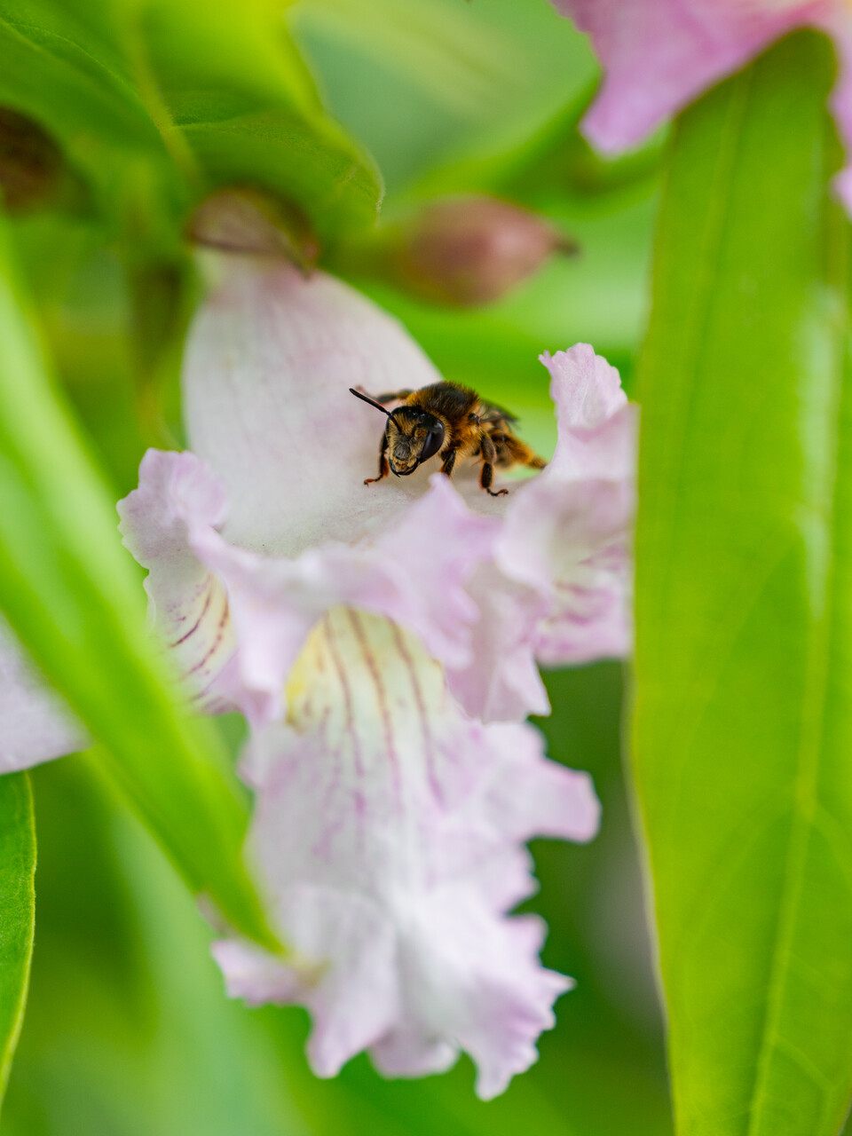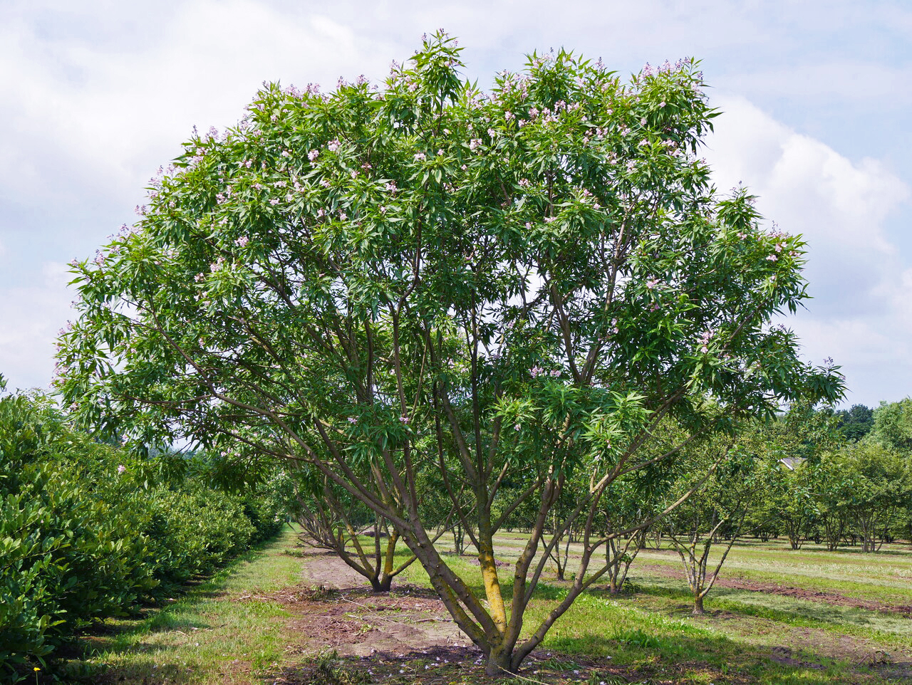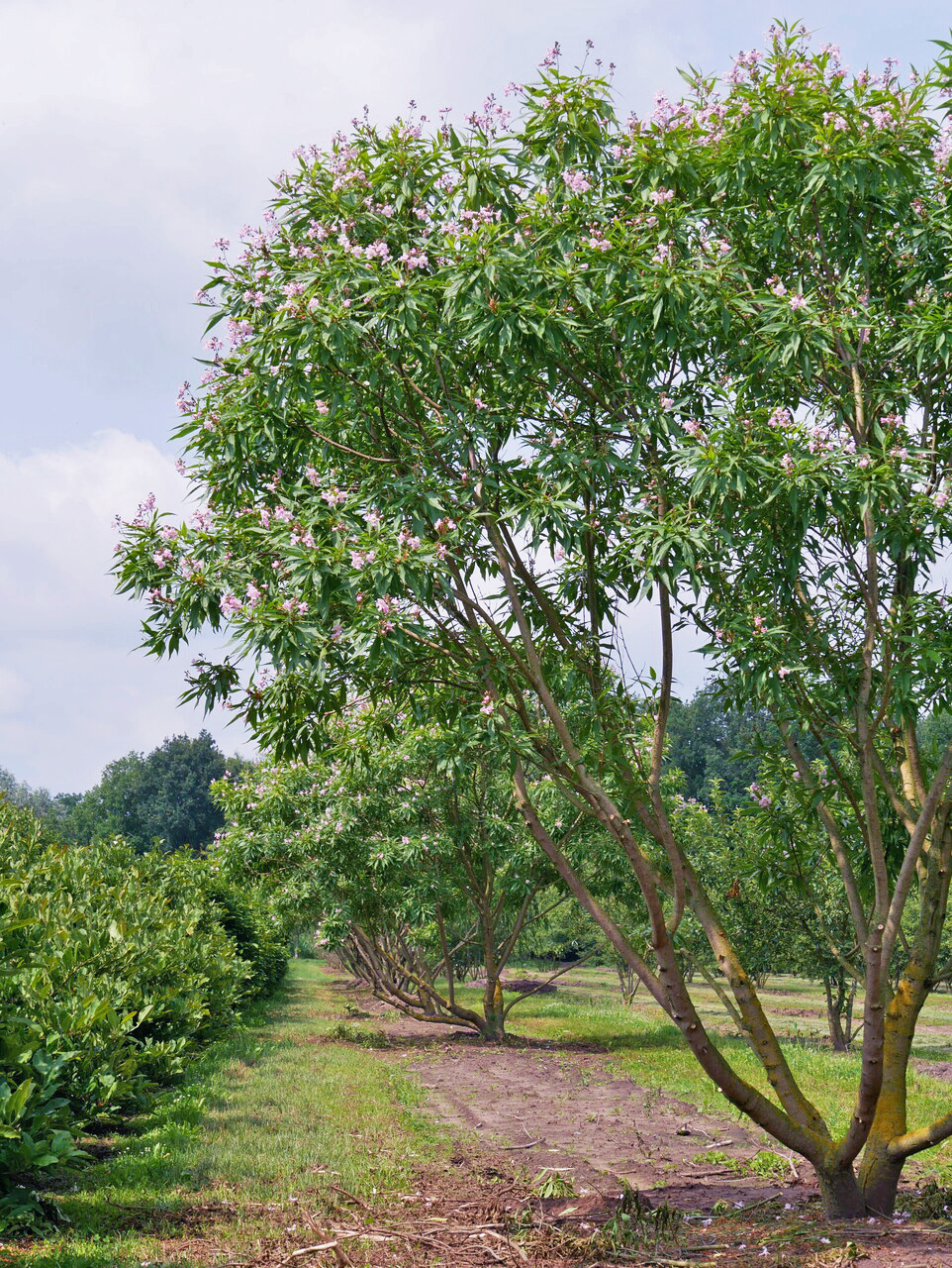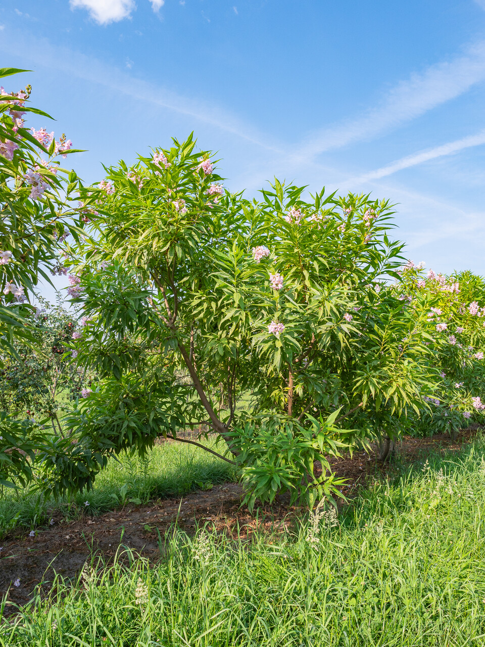 Le Chitalpa tashkentensis 'Summer Bells' fleurit en juin, juillet.