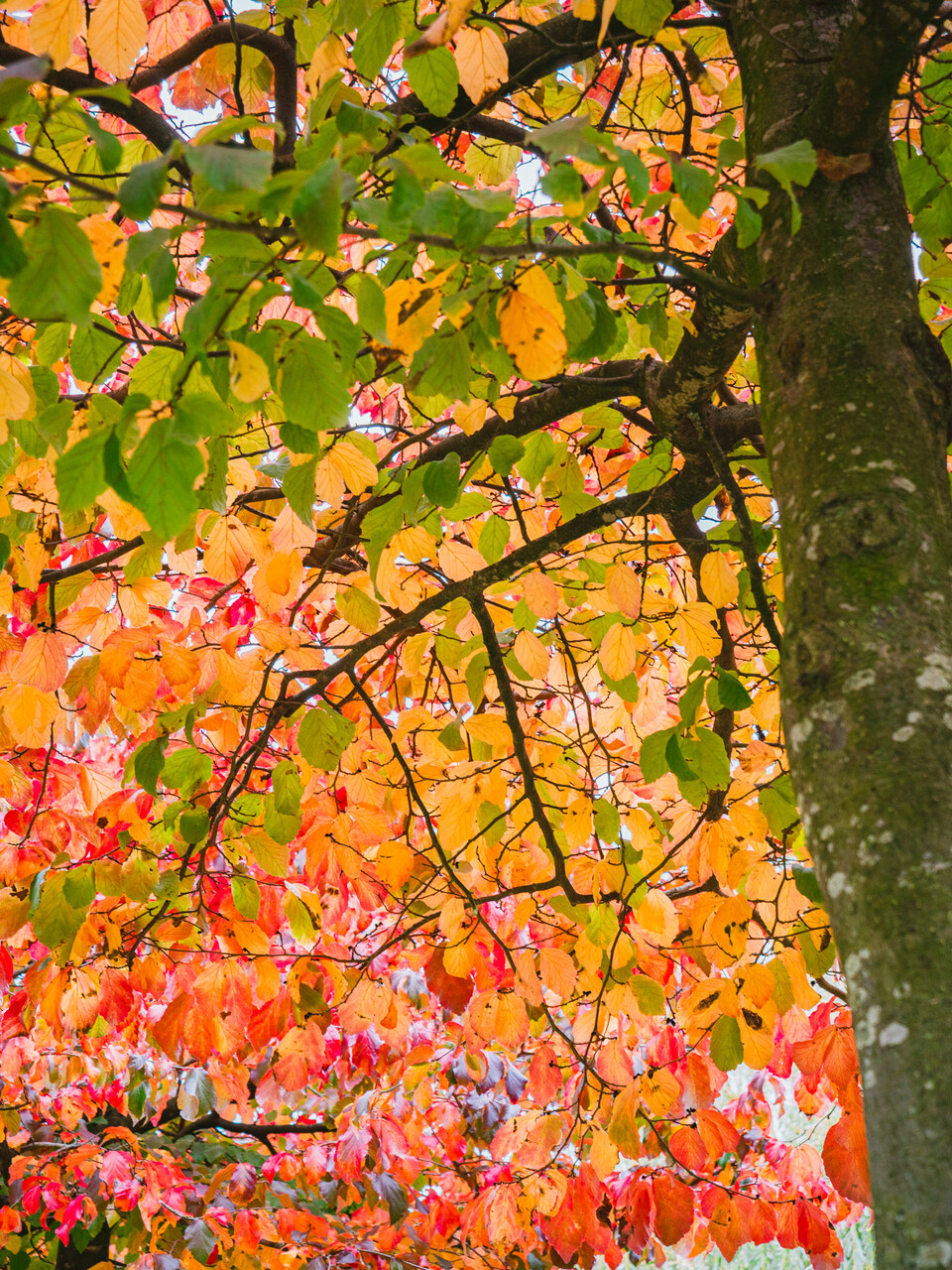 Les feuilles de Parrotia persica ournent au colors% à l’automne.