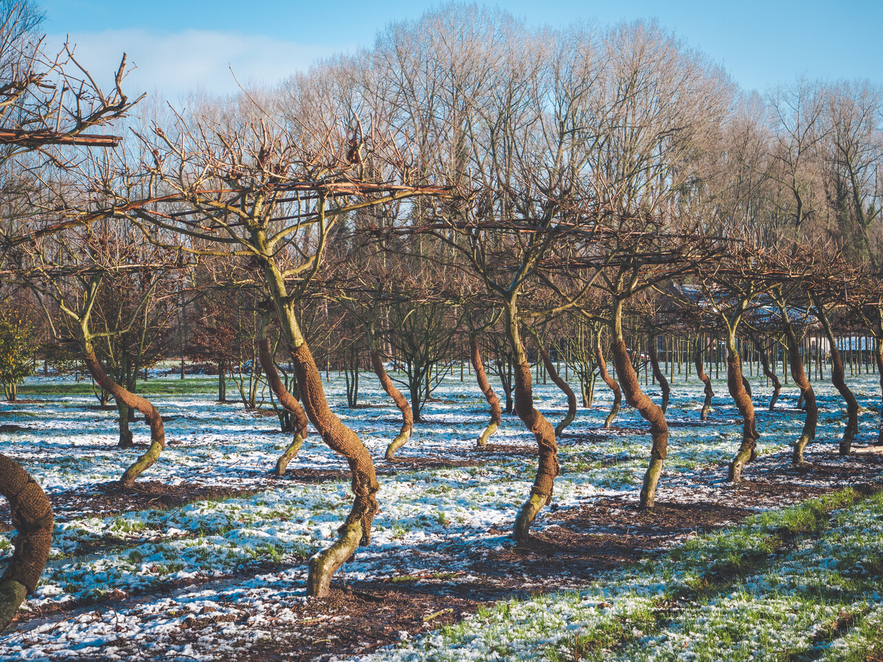 Comme pour les arbres formé en plateau ordinaires, il faut les tailler chaque année pour qu'ils conservent leur forme.