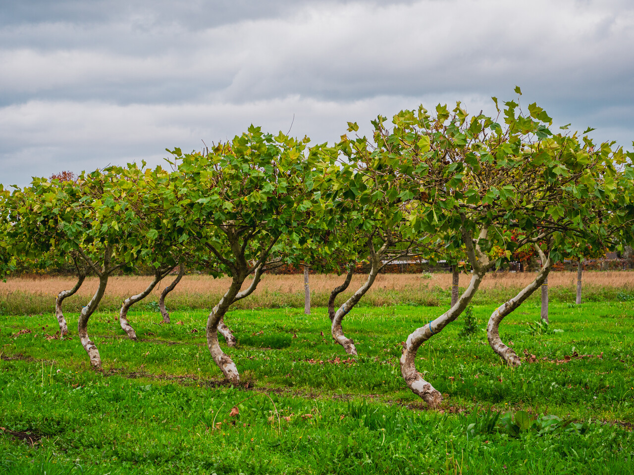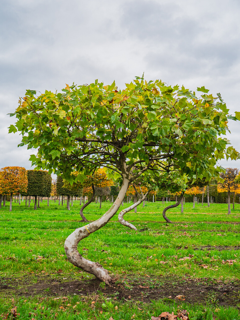 Les arbres THE SWING sont cultivés en Platanus x hispanica (platane) et Carpinus betulus (charme) car tous deux sont des arbres topiaires appréciés et s'intègrent dans de nombreux designs. Depuis l'automne 2020, le Parrotia persica (bois de fer), qui présente de si belles couleurs en automne, a également été ajouté à la gamme. Les arbres THE SWING sont brevetés et disponibles exclusivement auprès des Pépinières Van den Berk.