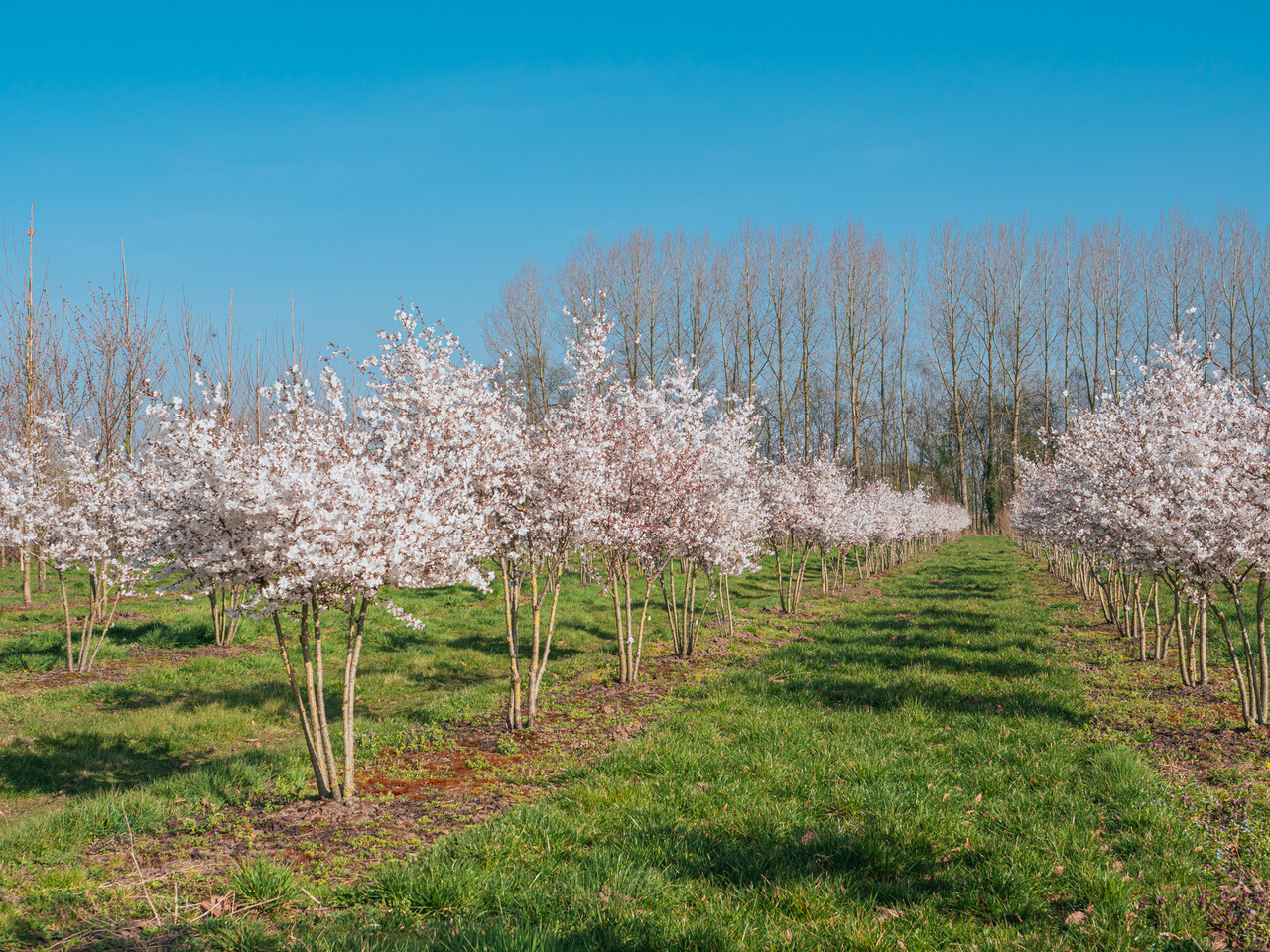 Le bon moment pour la plantation de Prunus 'The Bride' lors du repos végétatif. En Europe de l’ouest, les arbres Prunus 'The Bride' conditionnés en motte peuvent généralement être plantés entre mi-novembre et fin avril, mais cela dépend fortement des conditions climatiques et de l’espèce