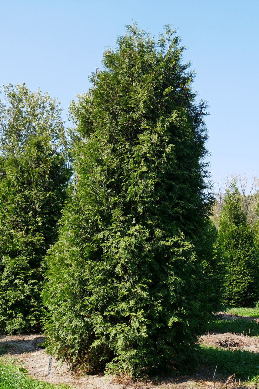 Thuja occidentalis 'Brabant' peut atteindre une hauteur jusqu’à éventuellement 10 à 15 m, croissance rapide selon le lieu de plantation et les conditions climatiques.