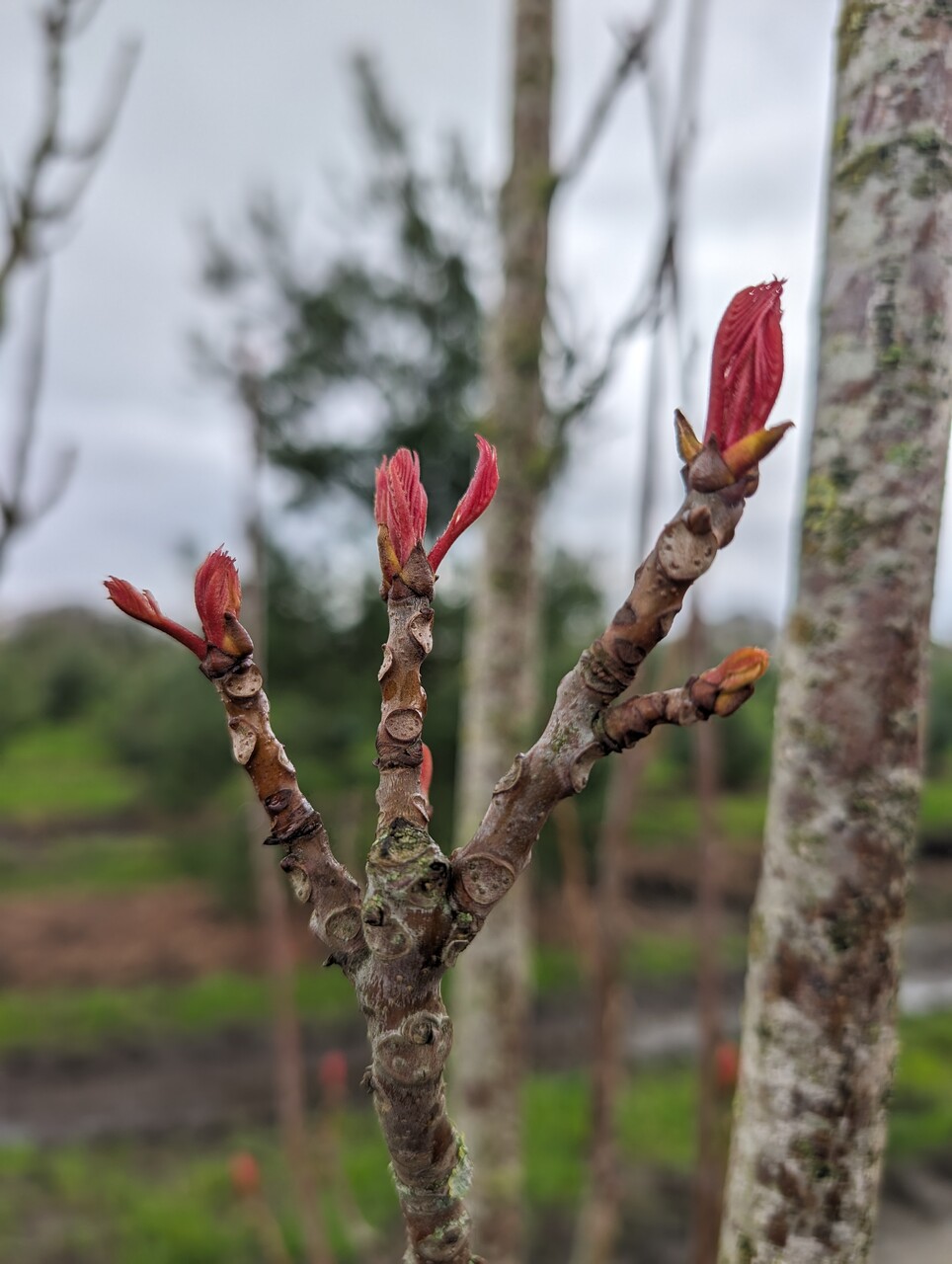 rameaux de couleur cuivre et velus, écorce gris brun fissurée en longueur