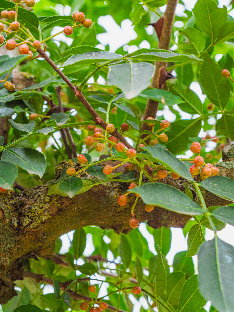 Zanthoxylum simulans peut atteindre une hauteur jusqu’à éventuellement 6-8 m selon le lieu de plantation et les conditions climatiques.