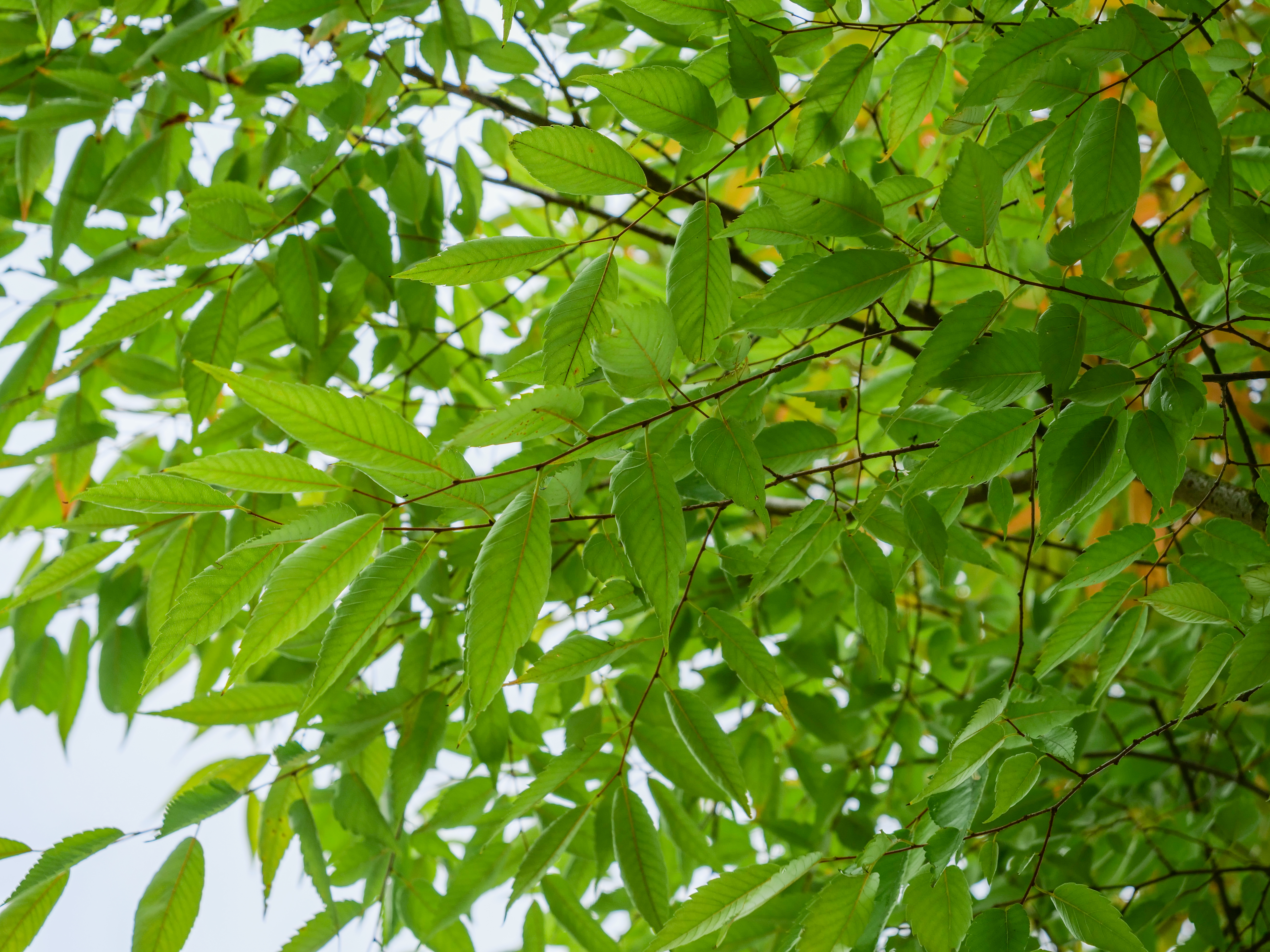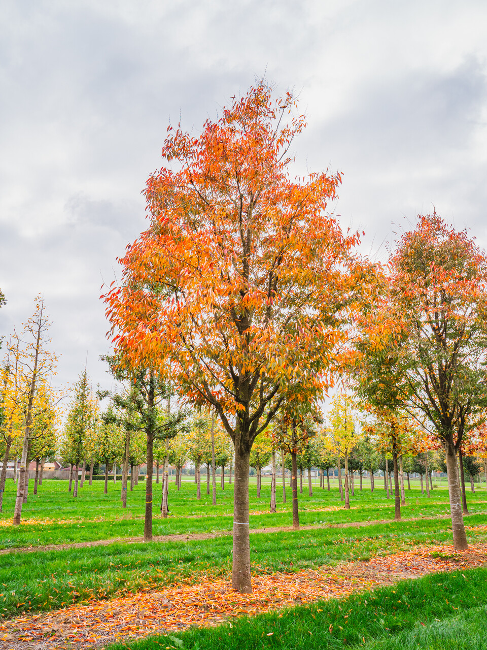 Les feuilles de Zelkova serrata GREEN VASE ('Flekova') ournent au colors% à l’automne.