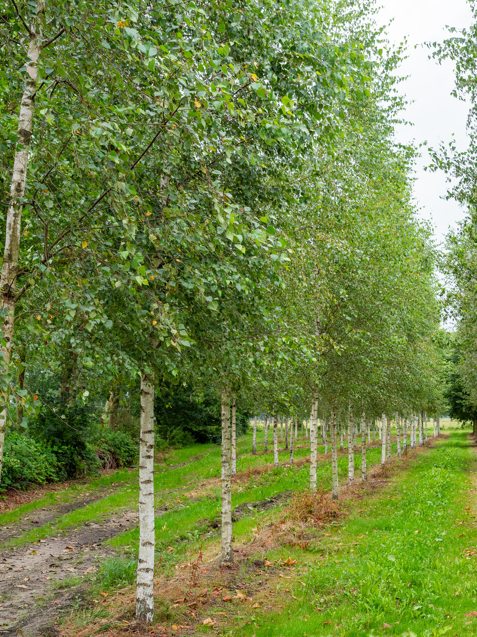 Le bon moment pour la plantation de Betula pendula lors du repos végétatif. En Europe de l’ouest, les arbres Betula pendula conditionnés en motte peuvent généralement être plantés entre mi-novembre et fin avril, mais cela dépend fortement des conditions climatiques et de l’espèce