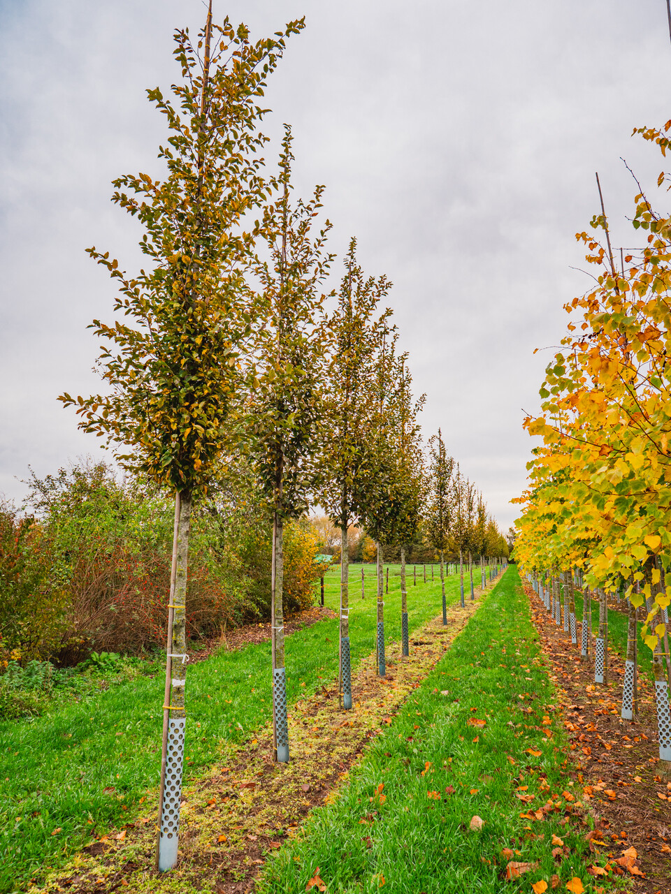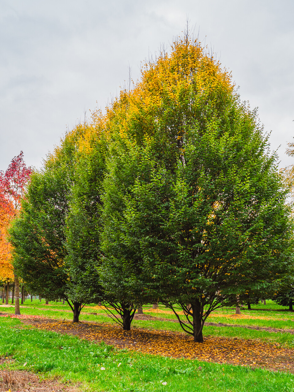 Les feuilles de Carpinus betulus 'Fastigiata' ournent au colors% à l’automne.