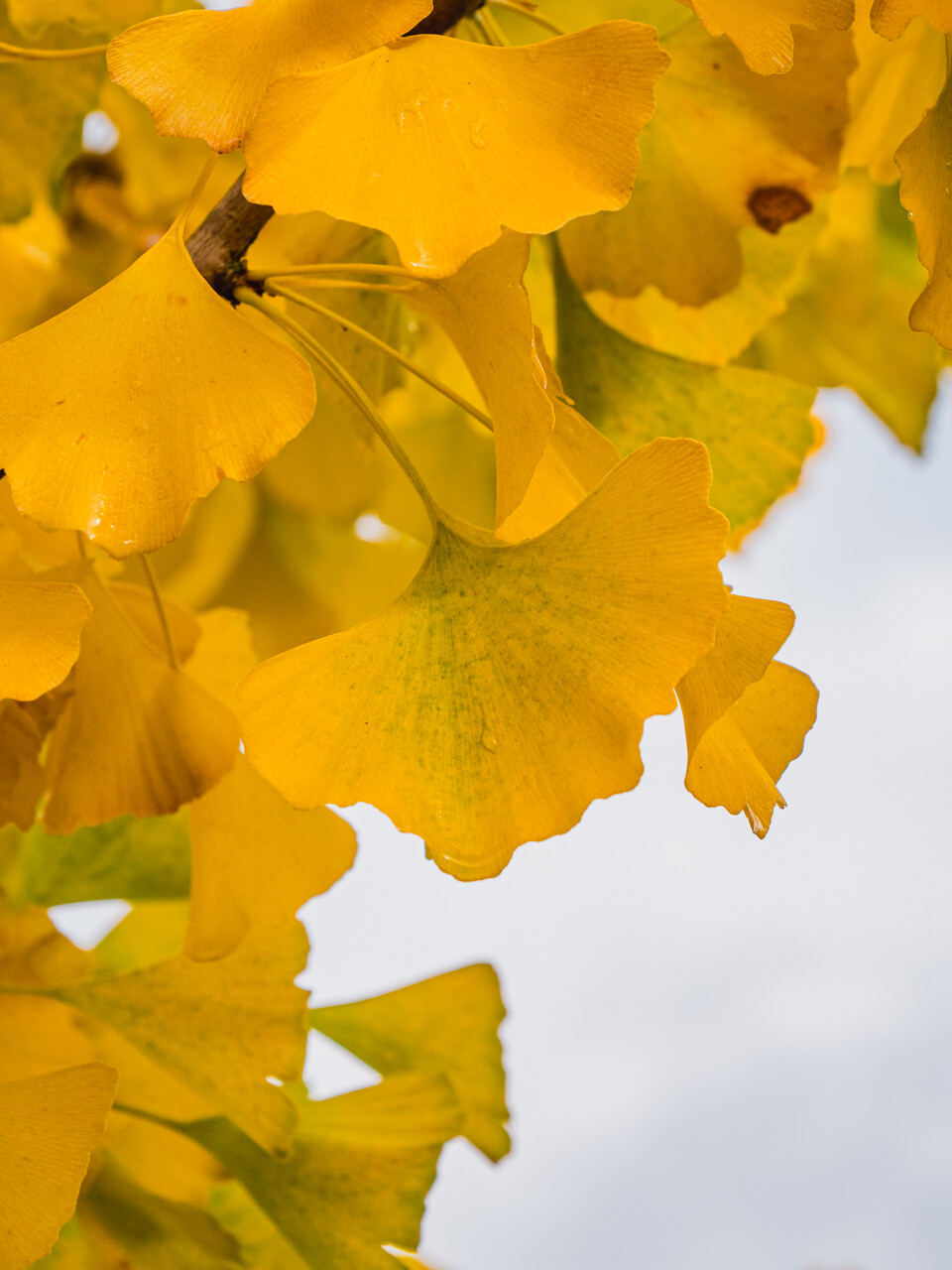Les feuilles de Ginkgo biloba ournent au colors% à l’automne.