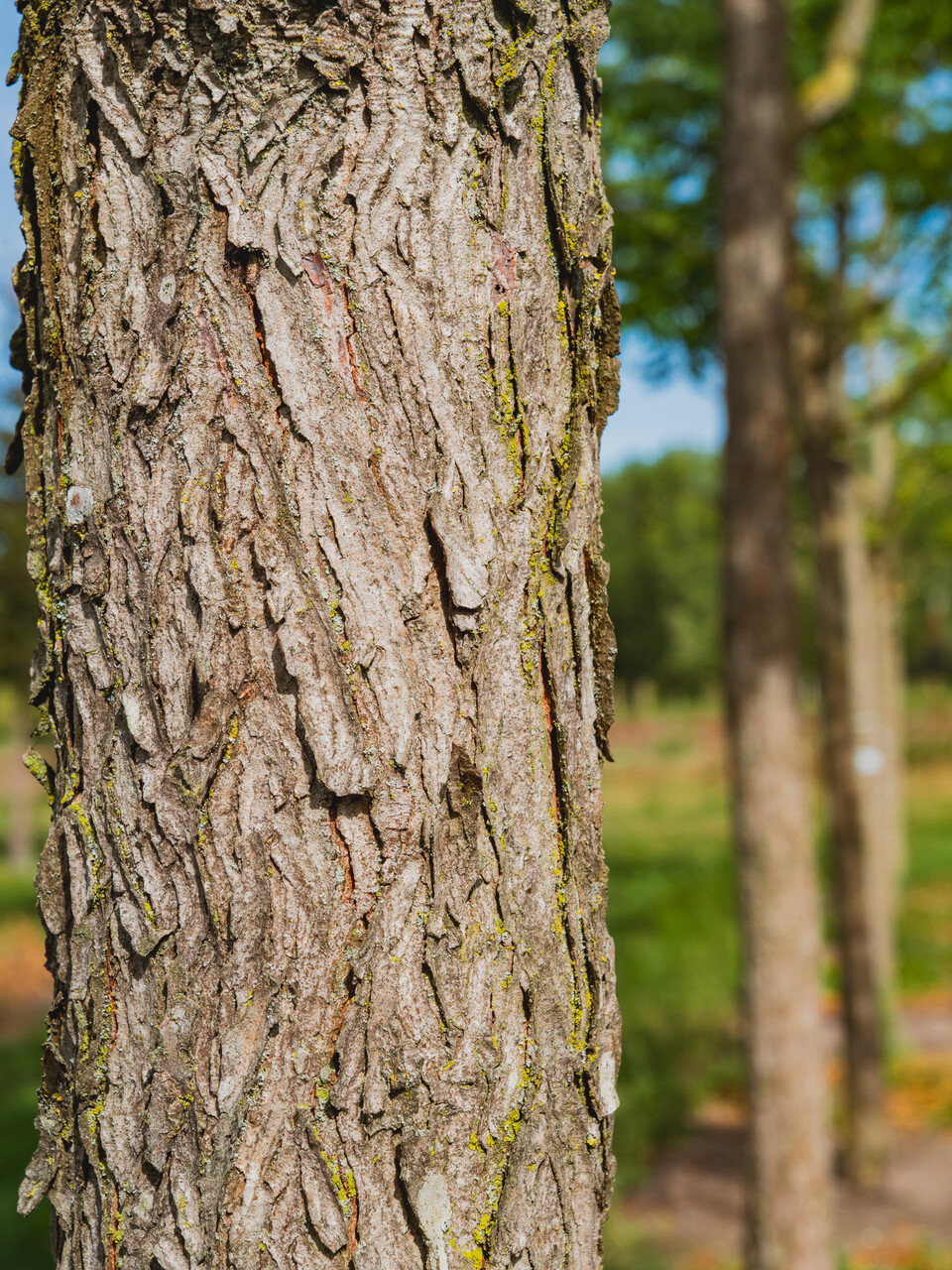 tronc gris foncé et cannelé, jeunes rameaux gris