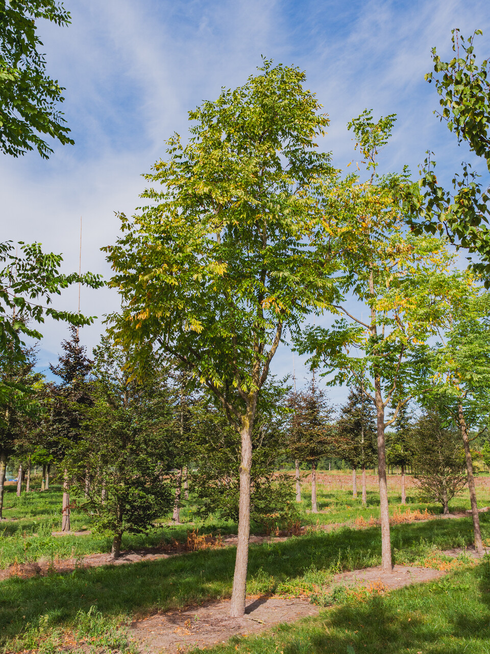 arbre en haute tigearbre multi-troncsol riche en calcairesol limoneuxsol sableuxne supporte pas de revêtementsupporte le gel (Rusticité 1 à 6)résistant à de courtes inondationsovale1ère taille, supérieure à 12 mètresCouronne semi-ouvertevertjuinfeuillaison tardivecroissance moyennefleurs remarquablefeuille pennéestous couleurs d'automnearbre mellifèrenon toxique (habituellement)croissance erratiqueFruit décoratifarbre de jeu