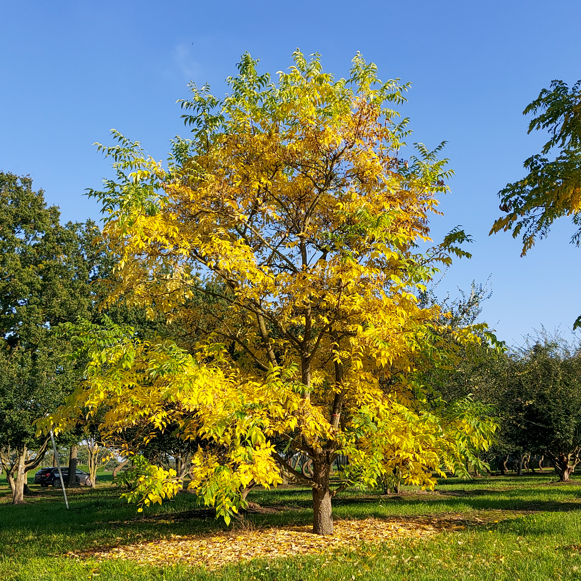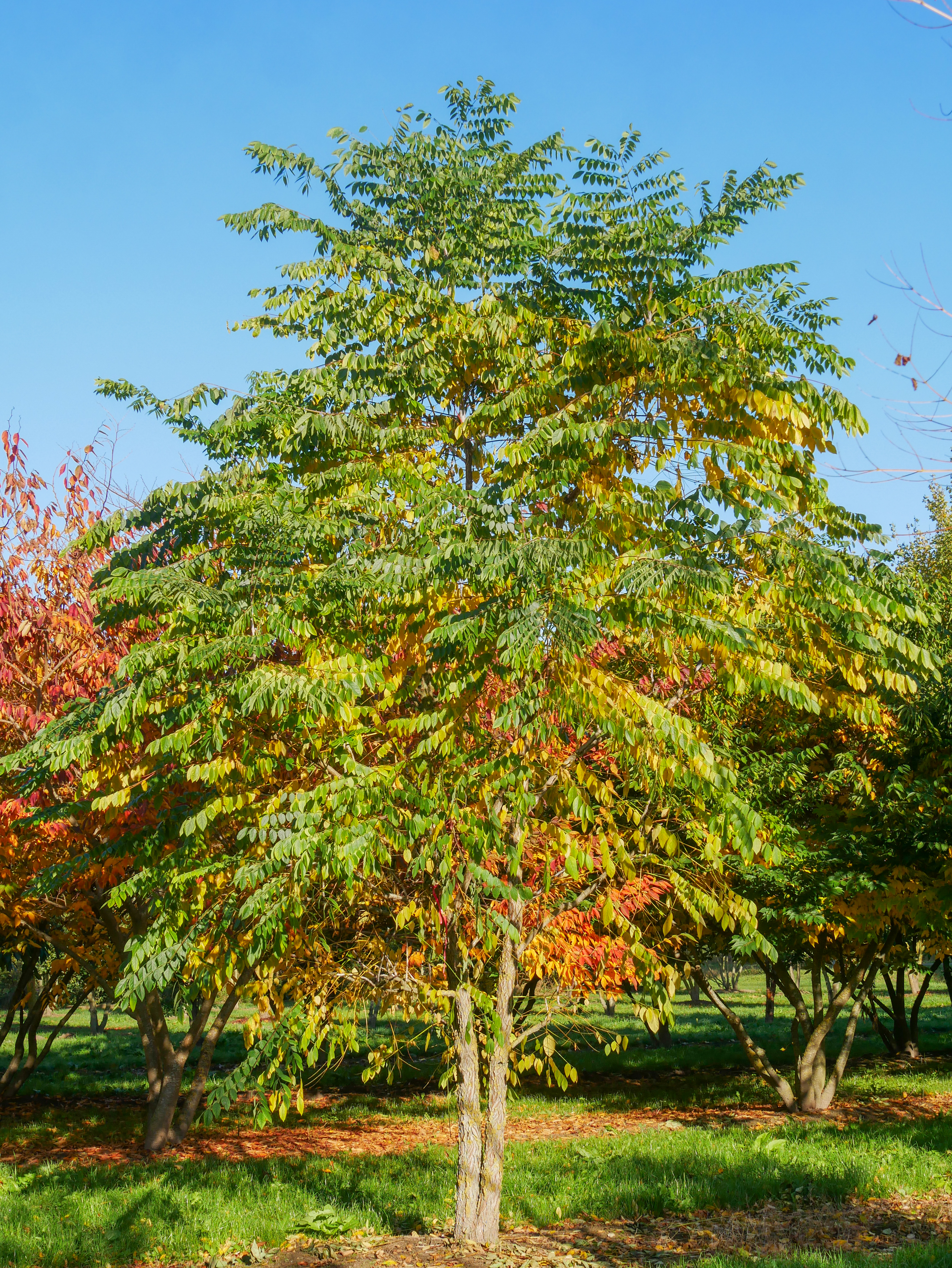 Les feuilles de Gymnocladus dioica ournent au colors% à l’automne.