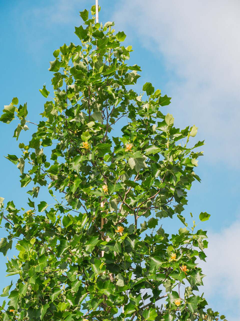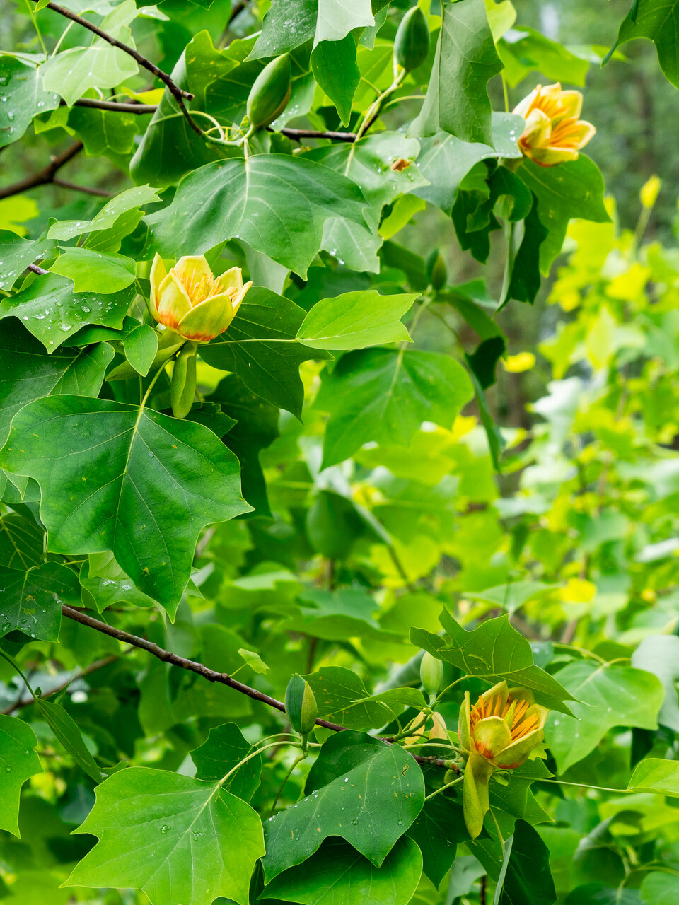 Liriodendron tulipifera peut atteindre une hauteur jusqu’à éventuellement 20 - 25 (35) m, croissance rapide selon le lieu de plantation et les conditions climatiques.