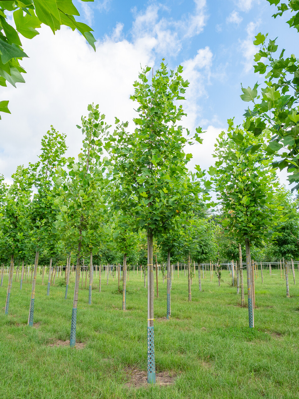 Le Liriodendron tulipifera a une croissance rapide et peut atteindre une hauteur jusqu’à éventuellement 20 - 25 (35) m, croissance rapide, en fonction du lieu de plantation et des conditions climatiques.