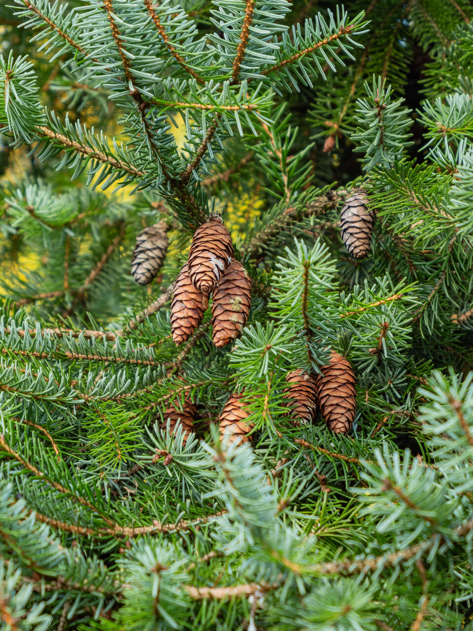 cônes pendants, 3 - 6 cm de long, environ 1 - 2 cm d’épaisseur