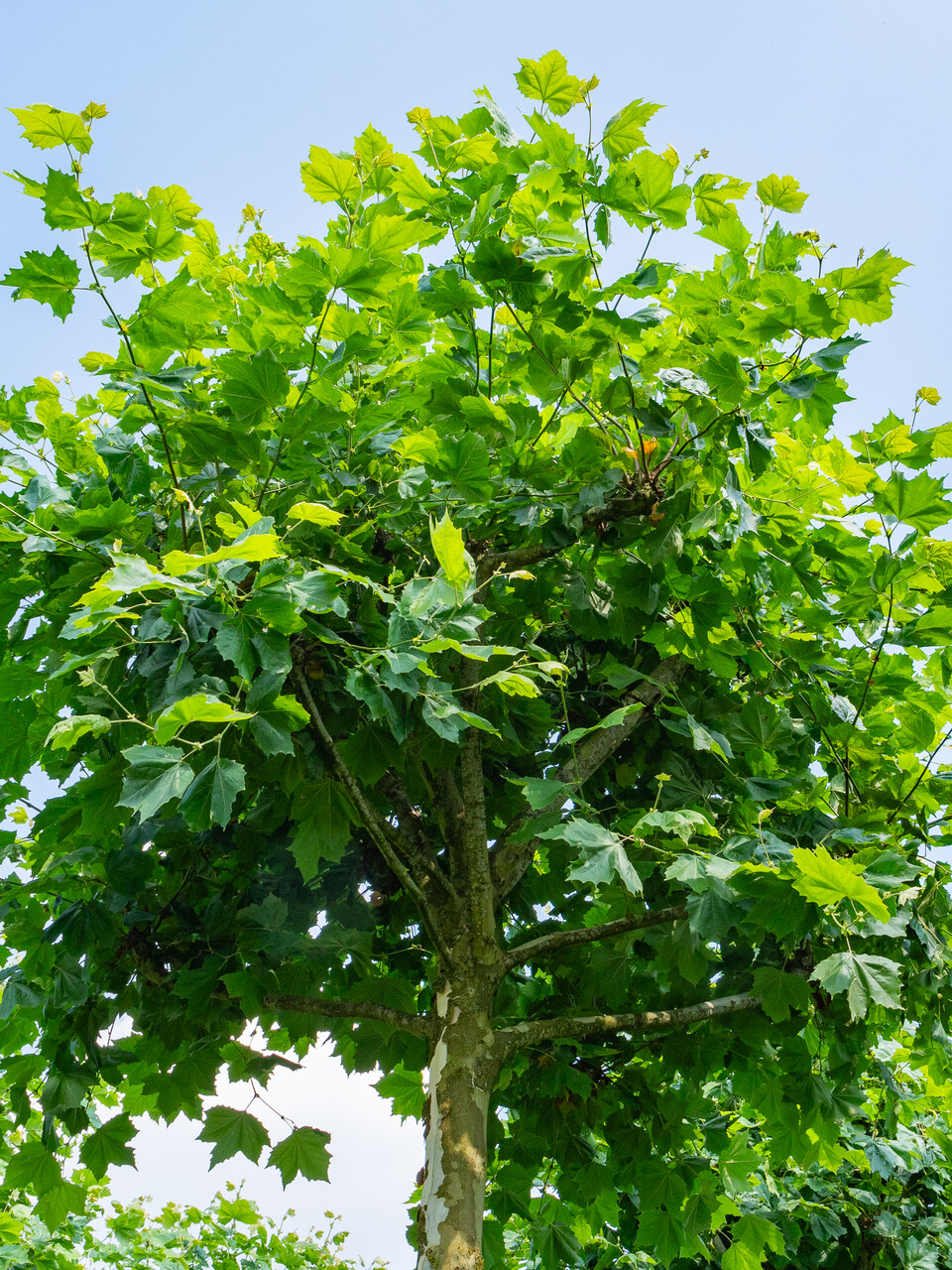Platanus ×hispanica peut atteindre une hauteur jusqu’à éventuellement 20 -30 (35) m, croissance rapide selon le lieu de plantation et les conditions climatiques.