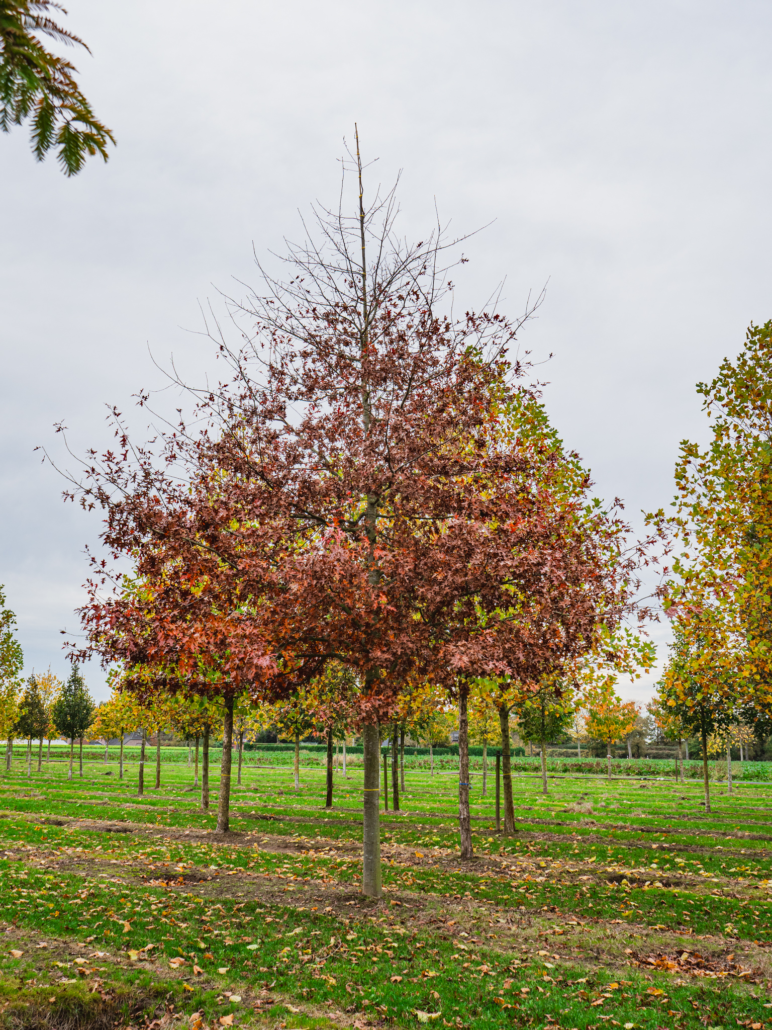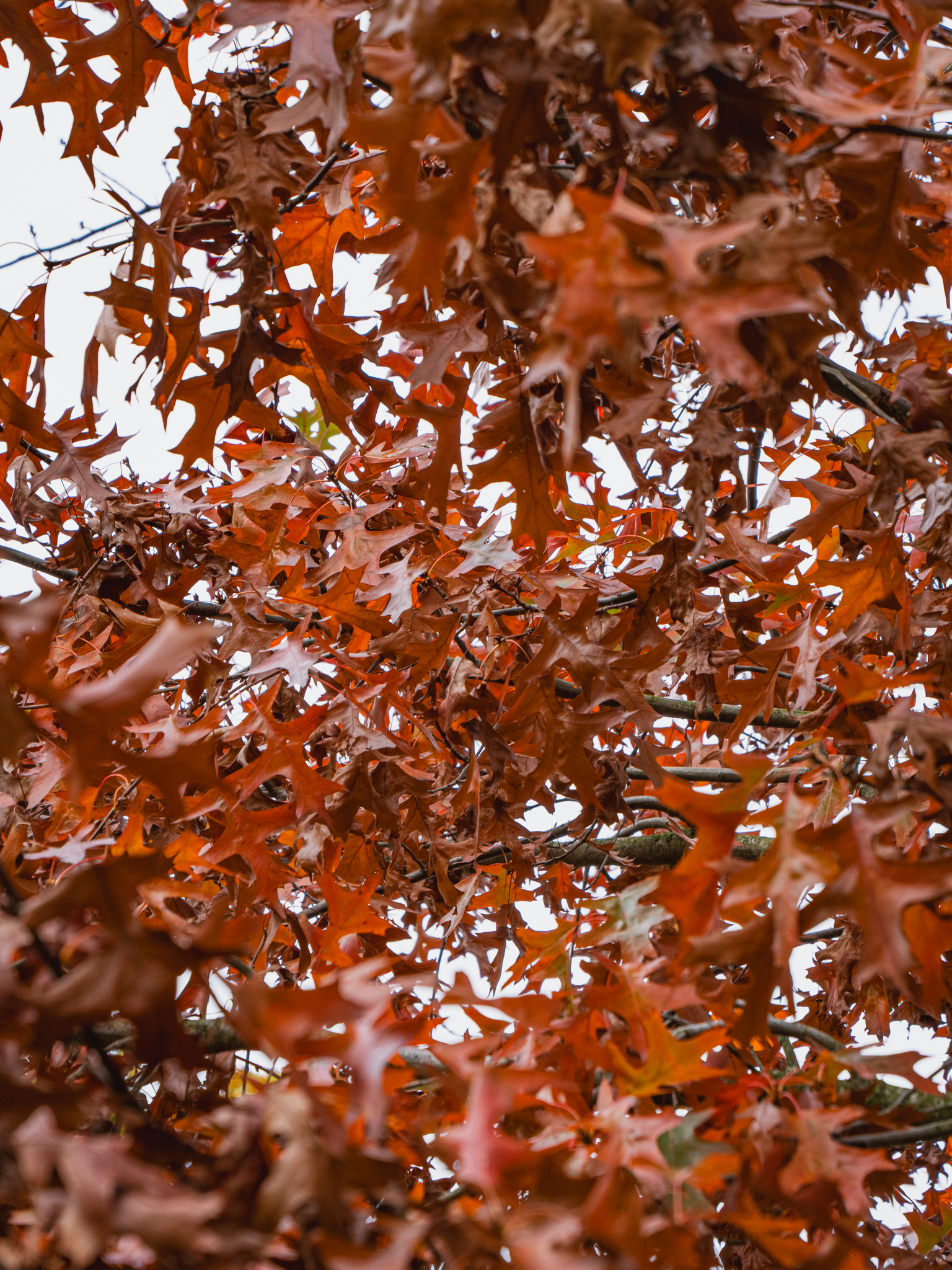 Les feuilles de Quercus palustris TREEVOLUTION® 'Woodside Splendor' ournent au colors% à l’automne.
