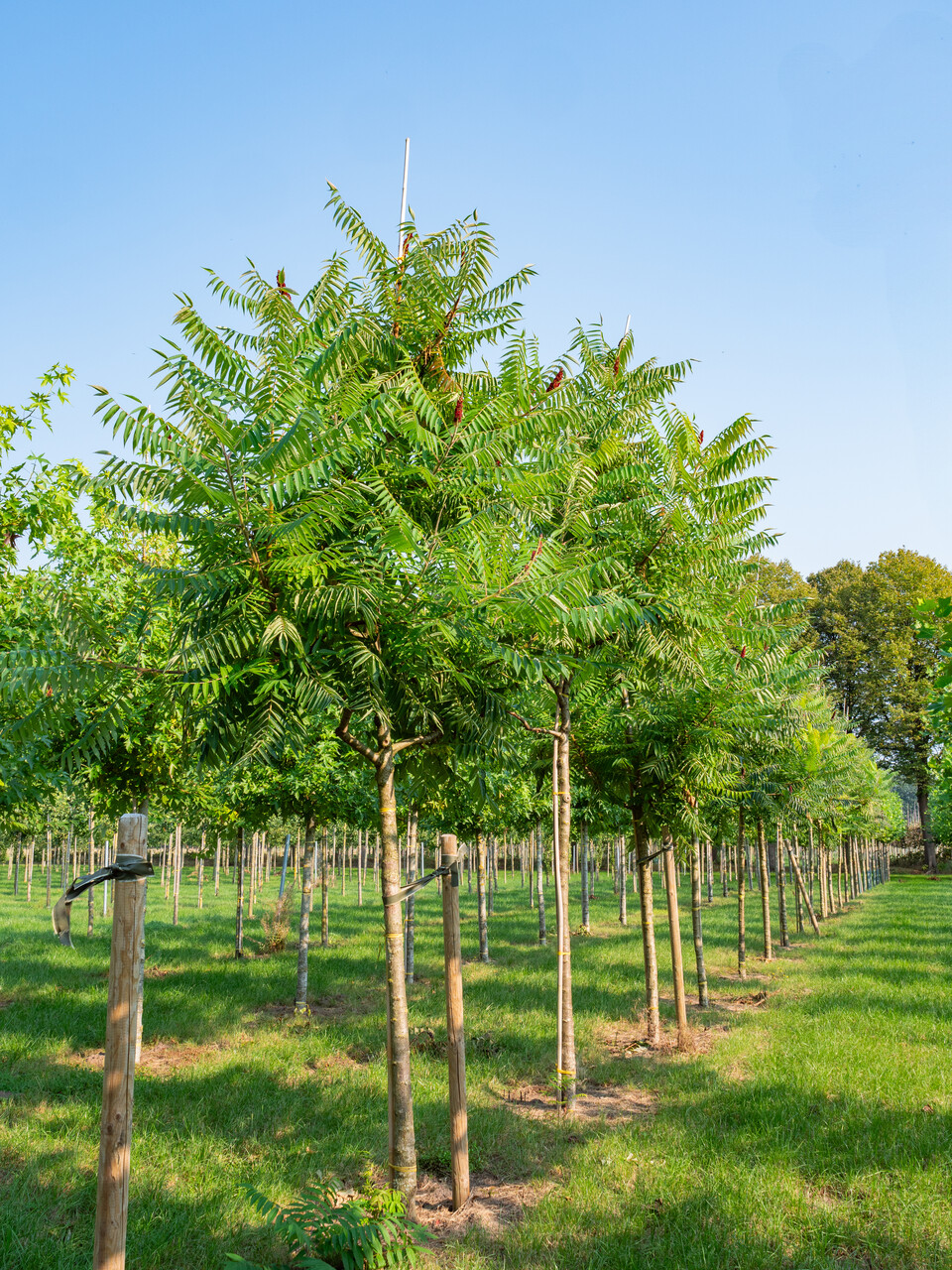 Le Rhus typhina a une croissance rapide et peut atteindre une hauteur jusqu’à éventuellement 6-8 m, croissance rapide, en fonction du lieu de plantation et des conditions climatiques.
